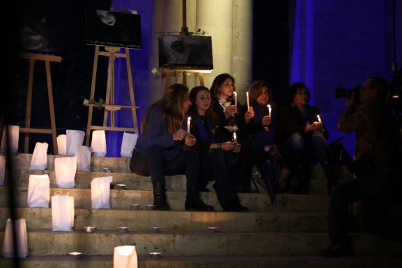 Women and men gathered in front of the National Museum in Beirut on December 23, 2017, to light candles in...
